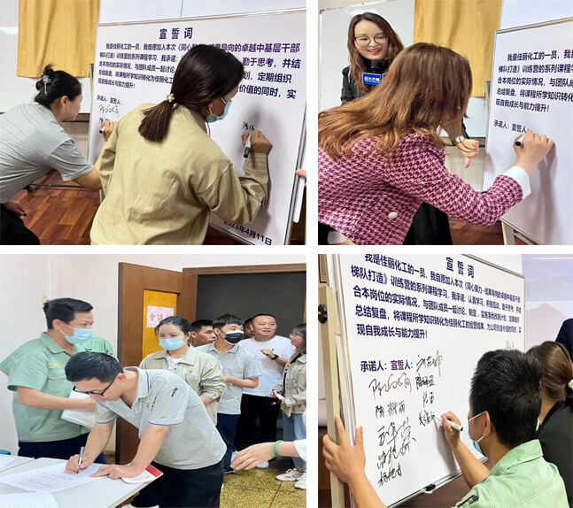 此次訓(xùn)練營(yíng)基于佳麗化工現(xiàn)階段發(fā)展瓶頸問(wèn)題,定制系列課程,采用“認(rèn)知改變-主題邏輯-方法論-實(shí)施步驟-工具表單-案例講解-小組演練-上臺(tái)分享-講師點(diǎn)評(píng)”的教學(xué)方式,每節(jié)課圍繞3個(gè)核心內(nèi)容講深講透,并結(jié)合主題內(nèi)容制定可落地實(shí)施的具體動(dòng)作,確保課后得到有效應(yīng)用。