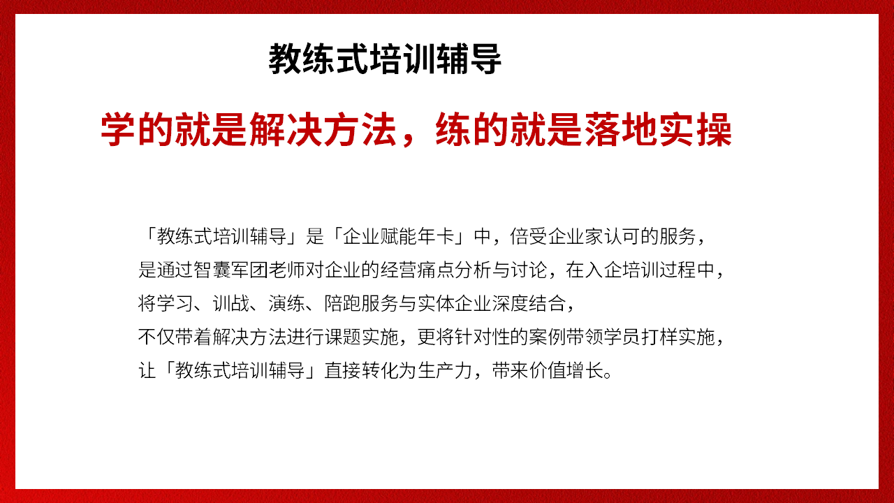 量身定制主題課程,結合企業(yè)實際,現(xiàn)場輔導落地