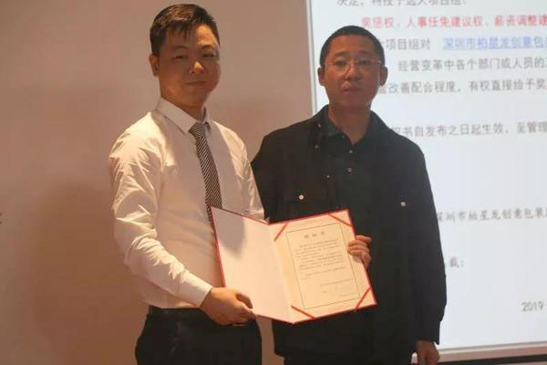 ▲柏星龍總裁為項(xiàng)目組頒發(fā)聘書(shū)