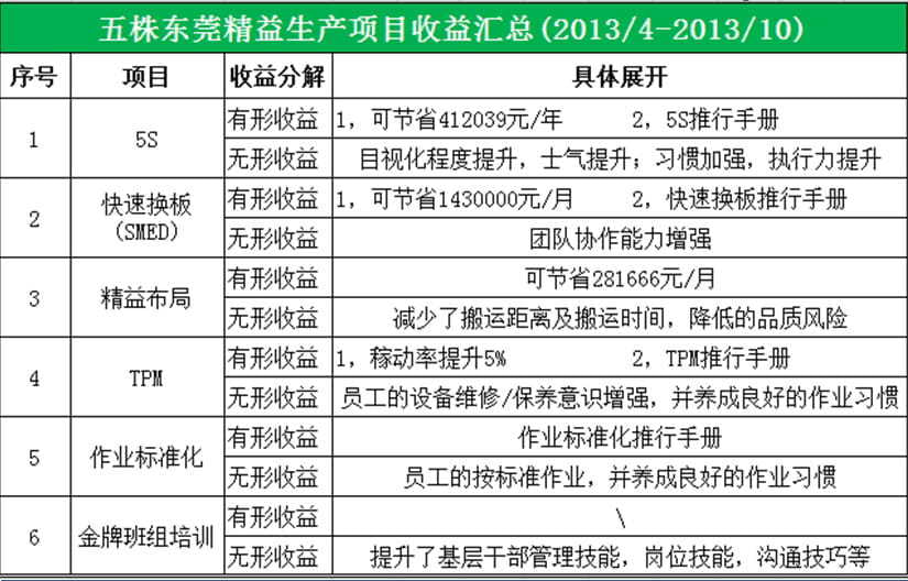 4、實(shí)施管理工具:包括5S與目視化管理、快速換板、精益布局(減少搬運(yùn)浪費(fèi))、TPM(設(shè)備保養(yǎng)、維護(hù)、稼動率提升);
