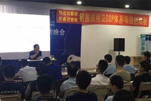 隨后,怡合達(dá)股份公司總經(jīng)理金總發(fā)表講話,以企業(yè)文化為切入點(diǎn),娓娓道來(lái);從“‘讓員工幸福、讓客戶感動(dòng)’是做這個(gè)企業(yè)最原始的信念”,講到“做的每一件事都是對(duì)企業(yè)文化的踐行”,“我們還在路上”。然后話題切入到本項(xiàng)目的意義探索上,針對(duì)公司老業(yè)務(wù)員的一句“百戰(zhàn)歸來(lái)再讀書”,讓全場(chǎng)人員肅然起敬。同時(shí),金總反復(fù)強(qiáng)調(diào)“銷售是一門技術(shù)”,接下去的項(xiàng)目工作中,“少加成功學(xué)的東西,要純技術(shù)的東西”,并在此基礎(chǔ)上升華為“銷售的原理一定要講清楚,道是根本;沒有道,再多的術(shù)也徒勞”。這與思睿達(dá)咨詢理念不謀而合。最后金總要求大家,理解意義,記住使命,全力配合項(xiàng)目工作。