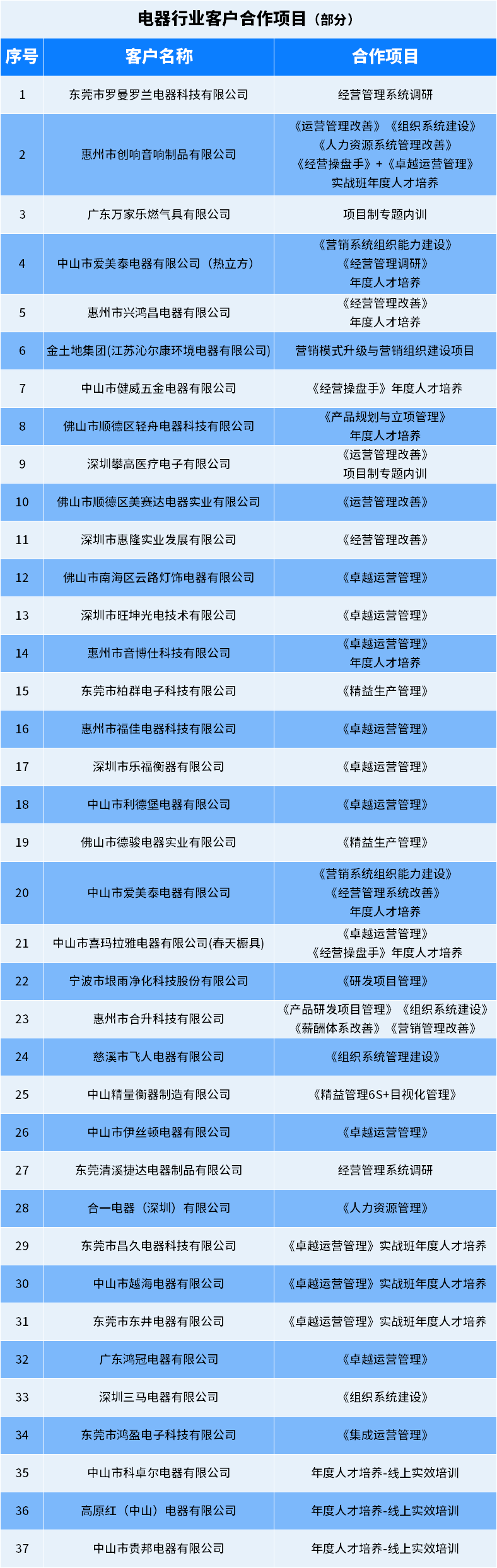 優(yōu)益電器與遠(yuǎn)大方略合作開(kāi)啟《人力資源管理系統(tǒng)》咨詢項(xiàng)目,持續(xù)優(yōu)化組織架構(gòu),完善了薪酬績(jī)效體系,有效提升公司各部門工作效率和目標(biāo)達(dá)成率。派送8人參加《卓越運(yùn)營(yíng)管理》實(shí)戰(zhàn)班培訓(xùn),圍繞財(cái)務(wù)管理、供應(yīng)鏈、精益、人力資源、研發(fā)、營(yíng)銷等模塊,培養(yǎng)了一支行動(dòng)力強(qiáng)、技能優(yōu)秀的中層管理干部,持續(xù)助推公司高速高質(zhì)量發(fā)展。
