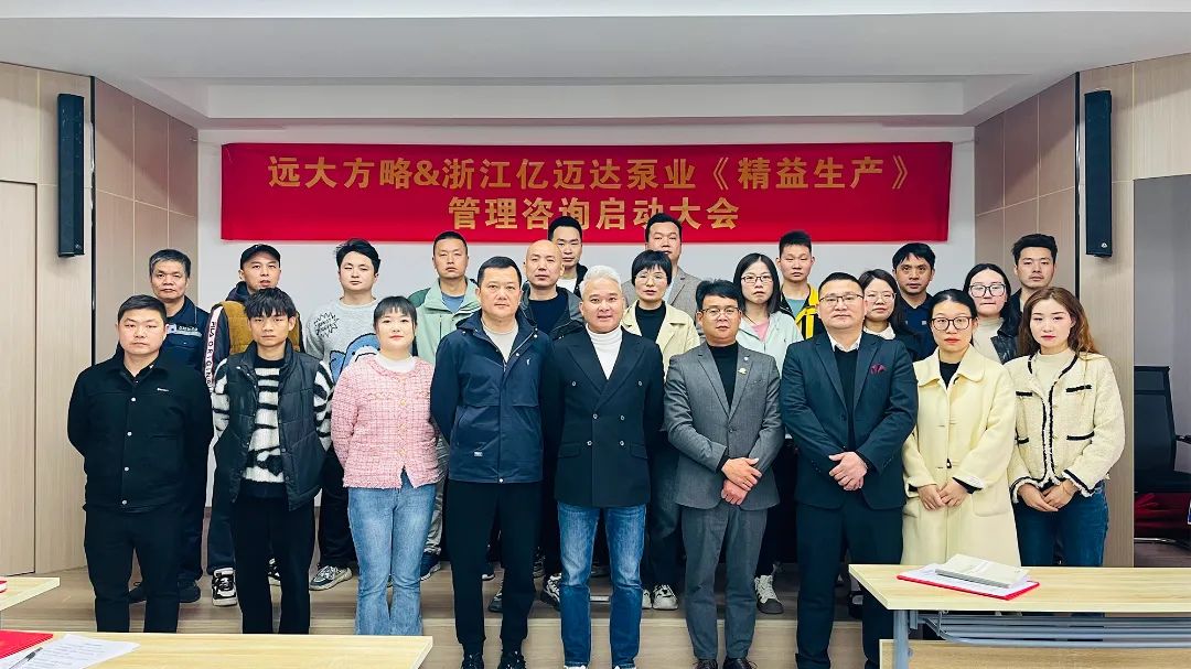 精益管理是一種先進的管理方式,企業(yè)要想持續(xù)發(fā)展,就需要與之相匹配的組織能力,所以公司同步開啟了《組織能力提升》項目,希望在遠大方略專業(yè)老師的指導(dǎo)下,能夠進一步激活組織,增強團隊戰(zhàn)斗力和凝聚力,打造一支強有力的團隊,支撐公司經(jīng)營目標有效落地。希望大家全力配合老師工作,推動項目順利進行,助力億邁達泵業(yè)開啟新篇章。