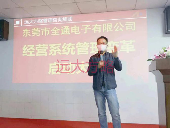 項(xiàng)目啟動(dòng)會(huì)上,東莞市全通電子總經(jīng)理唐忠華先生致辭表示:“ 公司進(jìn)行經(jīng)營(yíng)系統(tǒng)管理變革的意義,對(duì)于全通公司,不是要不要“變”,而是怎樣“變”、什么時(shí)候“變”的問題。遠(yuǎn)大方略管理咨詢集團(tuán)已輔導(dǎo)過上千家 制造型公司,我們周邊有非常多的案例,我們“看見”所以“相信”。本次的合作,我們要借力遠(yuǎn)大方略,以減少全通公司在成長(zhǎng)過程中摸索和出錯(cuò)的幾率,用較短的時(shí)間走完較長(zhǎng)的發(fā)展之路,實(shí)現(xiàn)快速騰飛。“主動(dòng)是人才,被動(dòng)是奴才”,所有管理者在項(xiàng)目合作期間,必須積極參與到這場(chǎng)“戰(zhàn)役”中,并與遠(yuǎn)大方略老師互動(dòng)、配合,形成推動(dòng)管理改善的合力。最后,預(yù)祝本次全通公司進(jìn)行的經(jīng)營(yíng)系統(tǒng)管理變革活動(dòng)能夠取得圓滿成功,希望我們的管理團(tuán)隊(duì)能在這次洗禮中實(shí)現(xiàn)自我成長(zhǎng)。”