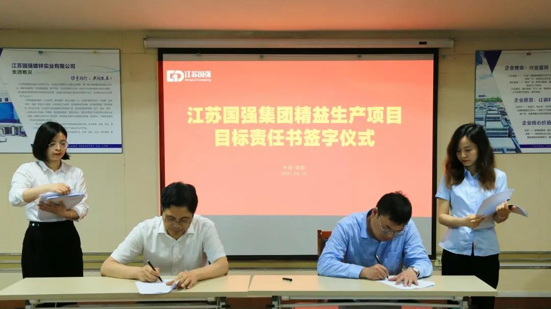 會(huì)上,董事長(zhǎng)與各專項(xiàng)小組組長(zhǎng)簽訂了精益生產(chǎn)項(xiàng)目目標(biāo)責(zé)任書。