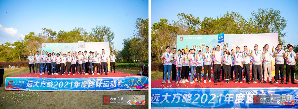 最后,遠(yuǎn)大方略家人共繪藍(lán)圖,所有家人組合成遠(yuǎn)大方略LOGO并圍成一個(gè)圓,代表著我們是相親相愛的一家人,這是我們共同的遠(yuǎn)大,我們擁有同一個(gè)目標(biāo),攜手同行共奮進(jìn),未來由遠(yuǎn)大方略家人共同開啟,需要大家各抒己見,建言獻(xiàn)策。經(jīng)過多輪激烈的耐力、體力及毅力角逐,最后炫風(fēng)隊(duì)、滄海隊(duì)、團(tuán)結(jié)隊(duì)分別獲得本次趣味運(yùn)動(dòng)會(huì)的冠亞季軍,最后雷總、姚總和凌總分別為獲獎(jiǎng)團(tuán)隊(duì)頒發(fā)獎(jiǎng)杯和獎(jiǎng)牌,同時(shí)為獲獎(jiǎng)團(tuán)隊(duì)開香檳慶祝。