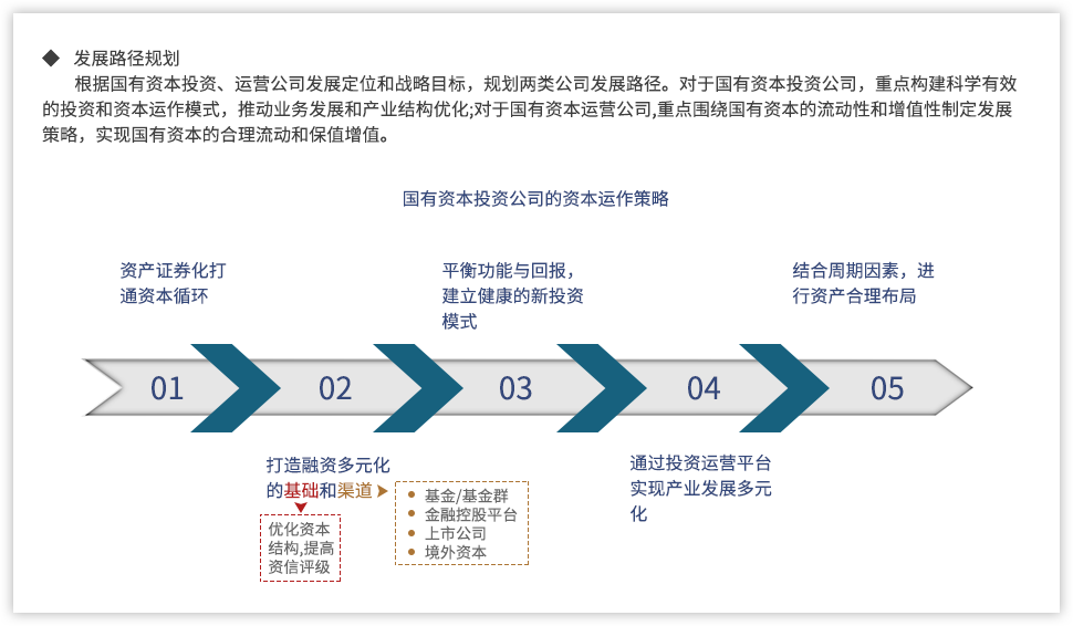 為了更好推動國有資本投資、運(yùn)營公司,提升國有資本運(yùn)營能力,遠(yuǎn)大方略認(rèn)為,需要進(jìn)一步明確國有資本投資、運(yùn)營公司的定位,基于國有資本整體視角進(jìn)行產(chǎn)業(yè)和業(yè)務(wù)的戰(zhàn)略定位,并通過強(qiáng)化企業(yè)內(nèi)部管理,提升國有資本的運(yùn)營效率。