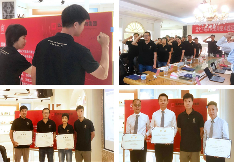 會(huì)上,蔡總頒發(fā)聘任書和授權(quán)書,聘任項(xiàng)目組老師為慶發(fā)陶瓷管理升級(jí)特聘顧問,為公司各部門負(fù)責(zé)人頒發(fā)了聘書,帶領(lǐng)大家在宣誓詞簽字并進(jìn)行集體宣誓,鼓舞公司全員參與變革。