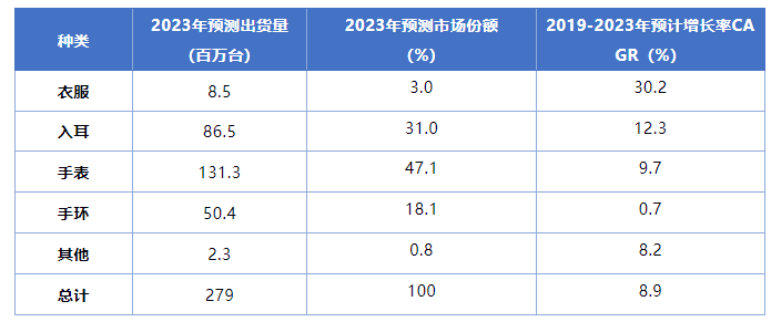 智能穿戴設(shè)備2023年全球預(yù)測數(shù)據(jù)