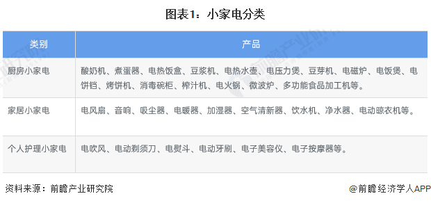 家用電器,簡稱家電,是指以電能來進行驅(qū)動(或以機械化動作)的家庭電器用具,可幫助執(zhí)行家庭雜務(wù)。家電基本上可以分為大型家電和小家電。大型家電與小家電相比體積較為寬大,不易運送且較常固定擺放在一個位置,此外也可能因其耗電量較大而需要有特殊的裝置或插頭來供應(yīng)電力。小家電是指一個相對于“大家電”、“白電”、“黑電”的俗稱,同時也是相對的概念,其基本特點是體積較小,價值較小,用電量較小。本文對于小家電概念界定如下:小家電指的是體積較小、功率較小且便于攜帶的,主要用于提升家庭生活品質(zhì)或者個人生活質(zhì)量及體驗的家用電器。