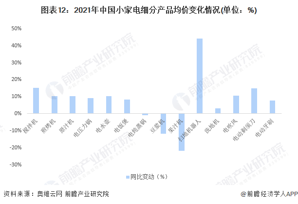2021年,中國廚房小家電產(chǎn)品均價整體同比有所上升,但具體而言,不同細分產(chǎn)品趨勢各有差異。攪拌機、煎烤機、原汁機、電壓力鍋、電水壺、電飯煲產(chǎn)品均價同比上漲約10%左右,尤其攪拌機上漲幅度約為15%,多數(shù)產(chǎn)品漲幅較大主要系因為2021年鋁、不銹鋼、銅等大宗原材料價格大幅快速上漲,成本上升逐漸傳導(dǎo)至終端價格所致。部分細分產(chǎn)品如豆?jié){機、果汁機價格有所回落,主要系細分市場競爭加劇且消費者對于非必須產(chǎn)品保持理性的購買心理。