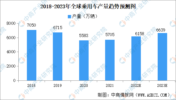 數(shù)據(jù)顯示,2018年至2020年全球乘用車產(chǎn)量呈現(xiàn)下滑趨勢,2021年隨著新冠肺炎疫情緩和,居民出行需求增加,乘用車產(chǎn)量出現(xiàn)增長,產(chǎn)量約為5705萬輛,同比增長2%。預(yù)計2022-2023年全球乘用車市場需求回暖加速,產(chǎn)量呈增長趨勢,到2023年全球乘用車產(chǎn)量將達6639萬輛。