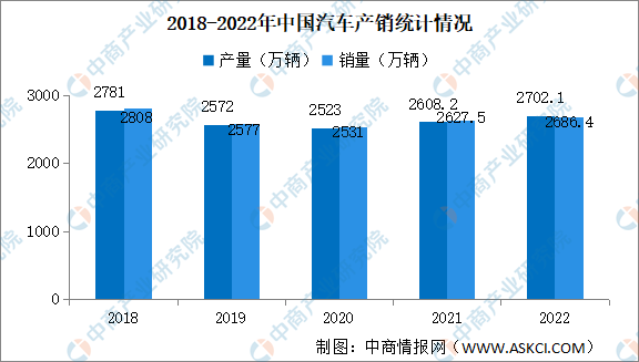 我國汽車產(chǎn)銷總量已經(jīng)連續(xù)14年穩(wěn)居全球第一,2022年,盡管受疫情散發(fā)頻發(fā)、芯片結(jié)構(gòu)性短缺、動力電池原材料價格高位運行、局部地緣政治沖突等諸多不利因素沖擊,但在購置稅減半等一系列穩(wěn)增長、促消費政策的有效拉動下,中國汽車市場在逆境下整體復(fù)蘇向好,實現(xiàn)正增長,展現(xiàn)出強大的發(fā)展韌性。2022年,我國汽車產(chǎn)銷分別完成2702.1萬輛和2686.4萬輛,同比分別增長3.4%和2.1%,與上年相比,產(chǎn)量增速持平,銷量增速下降1.7個百分點。