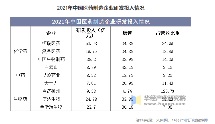 隨著藥品審評審批制度改革、國家醫(yī)保常態(tài)化調整等政策改革,“創(chuàng)新”逐漸成為藥企的發(fā)展理念?;瘜W制藥行業(yè)正在發(fā)生結構性變化,隨著仿制藥出現(xiàn)藥品價格持續(xù)下降的同時,行業(yè)集中度也有望提升;中醫(yī)藥行業(yè)政策利好不斷,相關部門從市場準入、醫(yī)保支付、審評審批等多個維度對中醫(yī)藥行業(yè)形成政策支撐,中藥原材料價格上漲對企業(yè)決策也造成一定的影響;生物藥雖然起步晚于化學藥,但近年來卻受全球藥企熱捧,成為藥企和投資者競爭的新方向,研發(fā)投入力度較大。