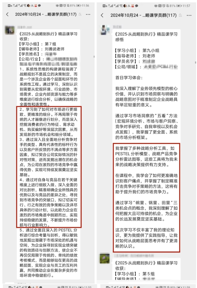 參加此次課程的學(xué)員超百人,來自不同行業(yè)不同企業(yè)的企業(yè)家、高管,更有部分企業(yè)組團前來學(xué)習(xí),剖析差距原因,識別增長機會,達成戰(zhàn)略共識,助力企業(yè)長效增長。白天的高能課程讓企業(yè)受益匪淺,結(jié)束一天的課程之后,企業(yè)老板都自發(fā)的帶著自己的團隊留下來繼續(xù)深化企業(yè)的戰(zhàn)略方案,從而實現(xiàn)從0到1的戰(zhàn)略規(guī)劃落地。