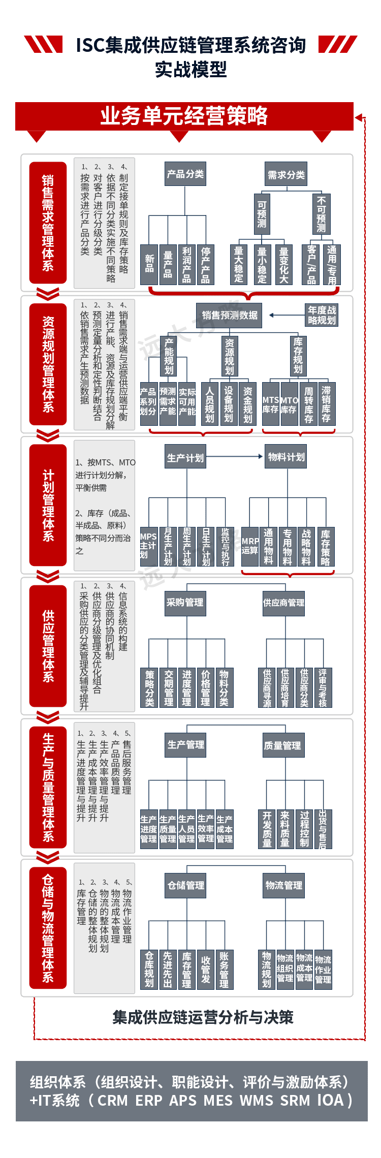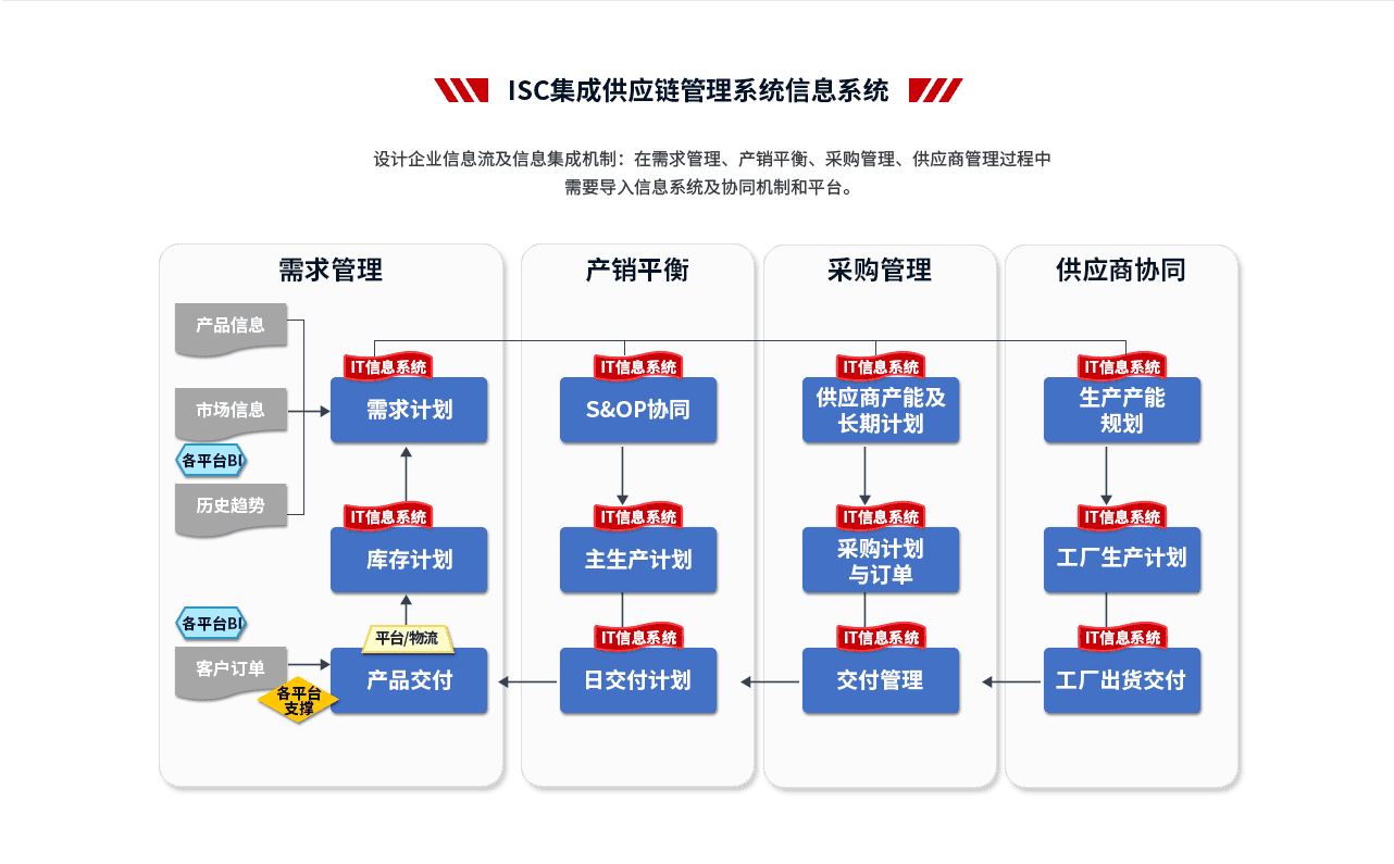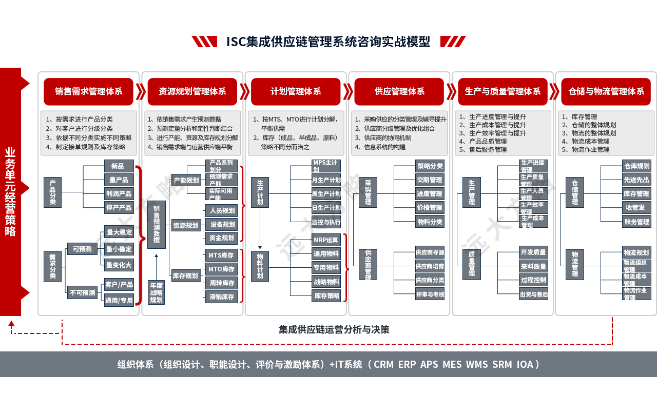 2、輔導(dǎo)模塊:推行ISC集成供應(yīng)鏈管理,主要圍繞產(chǎn)品運(yùn)營管理、接單規(guī)則和庫存管理、銷售預(yù)測管理、S&OP管理、公司計(jì)劃模式優(yōu)化、物料管理體系等
